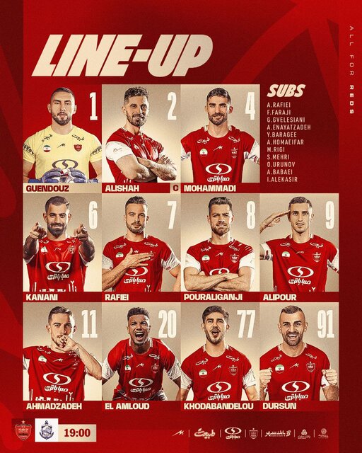 به گزارش دولت بهار به نقل از ایسنا، اسماعیل کارتال ترکیب تیمش برای دیدار برابر ملوان را مشخص کرد. بر همین اساس پرسپولیس با ترکیب گندوز، امید عالیشاه، میلاد محمدی، حسین کنعانیزادگان، سروش رفیعی، مرتضی پورعلیگنجی، علی علیپور، فرشاد احمدزاده، ایوب العملود، محمد خدابندهلو و سردار دورسون به میدان میرود.