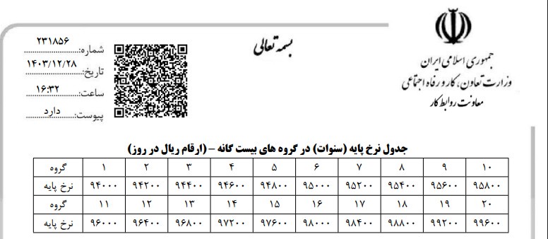 جدول محاسبه حقوق کارگران در سال جدید منتشر شد