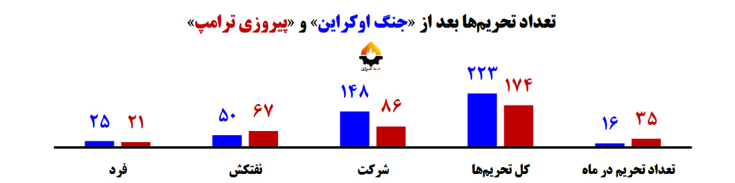 اما در دور جدید تحریمها، در بازه زمانی 5 ماهه 67 نفتکش مشکوک به حمل نفت ایران تحریم شدند که نشان از تشدید تحریم های آمریکا نسبت به بعد از جنگ اوکراین است که بر مبنای شاخص «تعداد تحریم در یک ماه» از 16 عدد به 35 عدد رسیده و بیش از 2 برابر شده است.