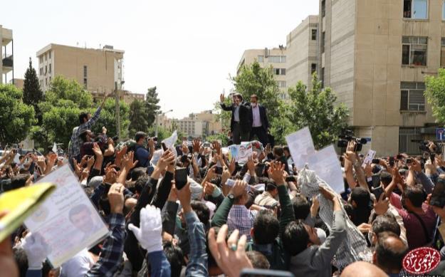 استقبال پرشور مردم از دکتر احمدینژاد پس از ثبت نام در انتخابات