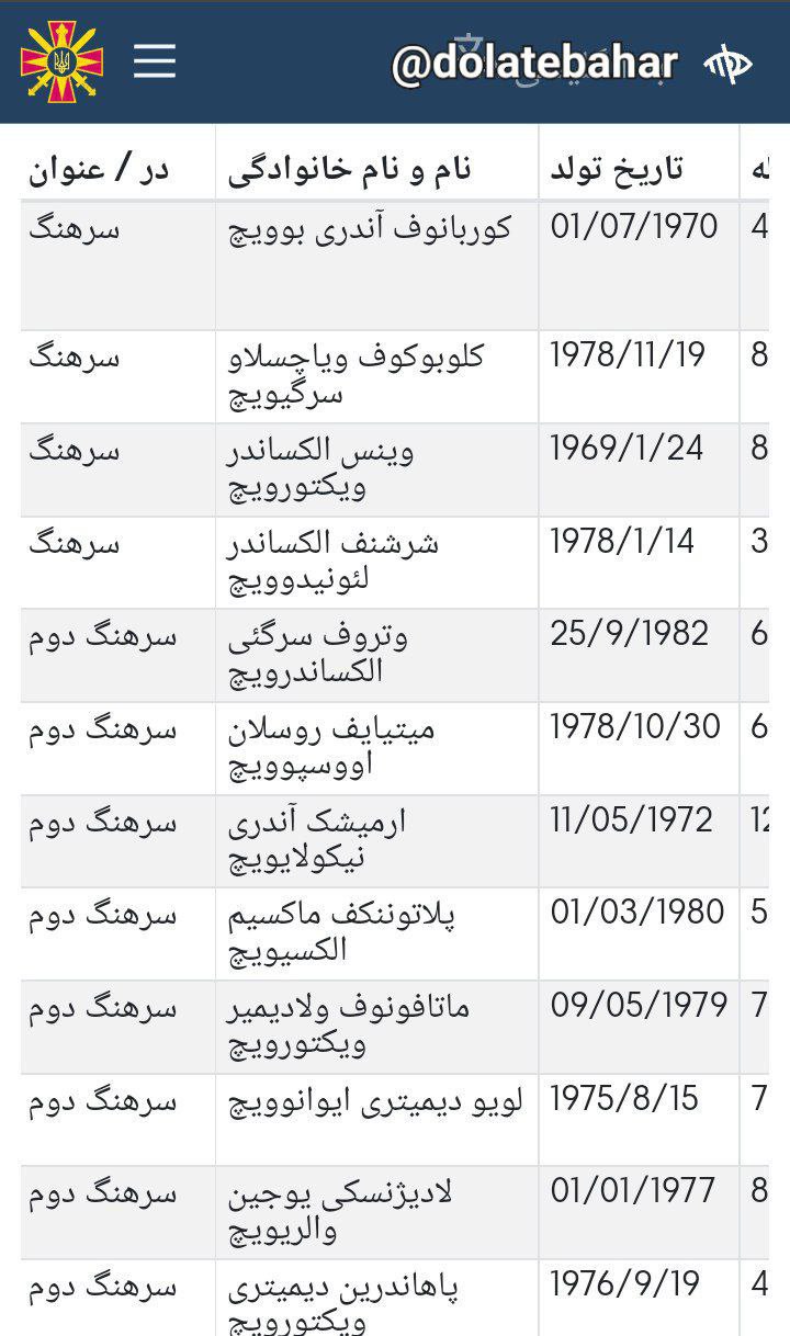به گزارش دولت بهار، سرویس اطلاعاتی اوکراین نام و اطلاعات نظامیان روسی را که در شهر بوچا حضور داشتند منتشر کرد!