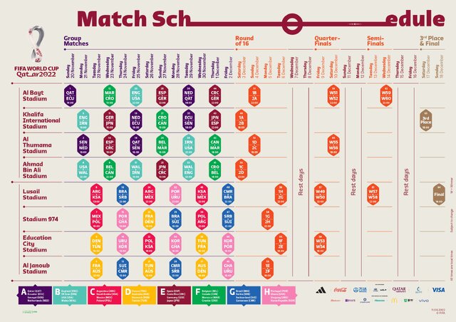 به دنبال درخواست کمیته بازیها و موافقت فیفا، آغاز جام جهانی ۲۰۲۲ یک روز جلو کشیده شد تا رسم مراسم افتتاحیه و حضور تیم میزبان (پیشتر، مدافع عنوان قهرمانی) در اولین بازی حفظ شود.