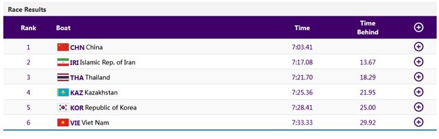 قایق ایران با ترکیب مهسا جاور و زینب نوروزی زمان ۷ دقیقه، ۱۷ ثانیه و ۸ صدم ثانیه را ثبت کرد و دوم شد و به مدال نقره رسید.