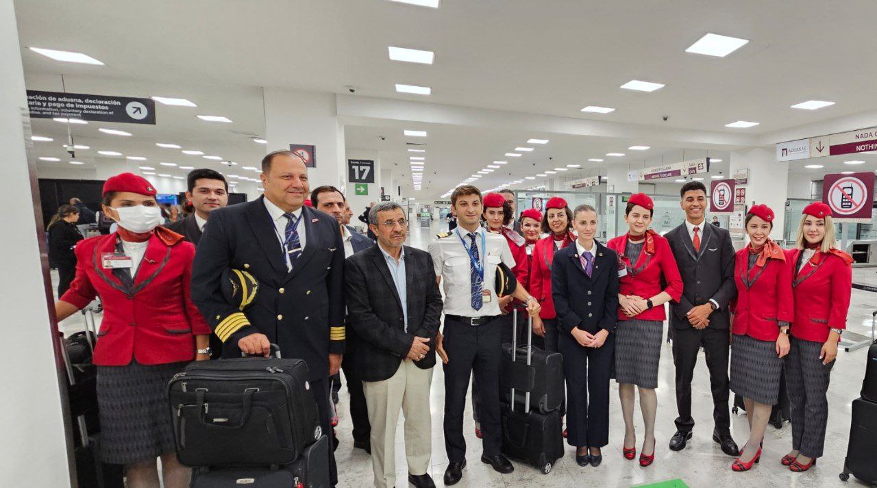 در پایان پرواز، کادر پروازی ترکیش ایر به درخواست کاپیتان پرواز با دکتر احمدی نژاد عکس یادگاری گرفتند.