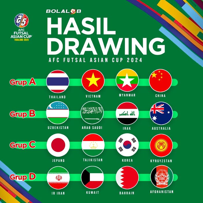گروههای مسابقات جام ملتهای فوتسال آسیا ۲۰۲۴ به شرح زیر است:
