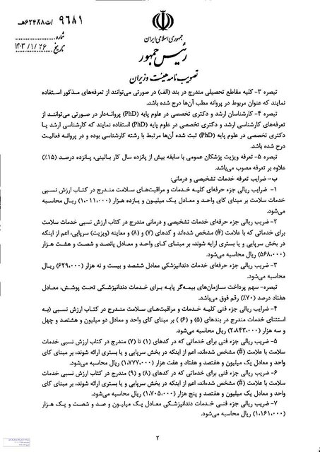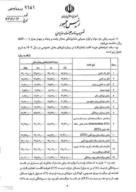 معاون درمان وزارت بهداشت گفت: همچنین جزء حرفهای اعمال جراحی و خدمات (دستمزد) برای بخش خصوصی ۱۰۱ هزار تومان و برای بخش دولتی نیز ۳۰ هزار تومان در نظر گرفته شده است.