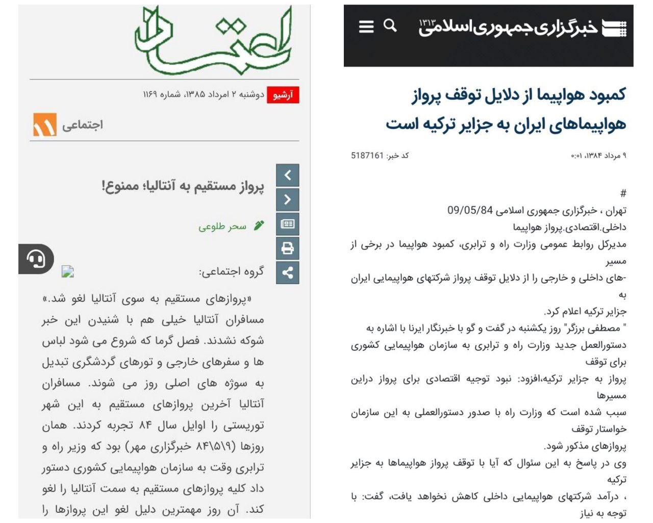 بررسی ها نشان می‌دهد این رسانه ها عامدانه تلاش کرده اند تا بر این واقعیت که‌ دولت خاتمی دستور توقف پرواز مستقیم ار ایران به آنتالیا را در آخرین روزهای خود صادر کرده سرپوش بگذارند.